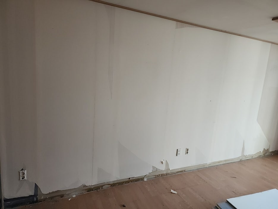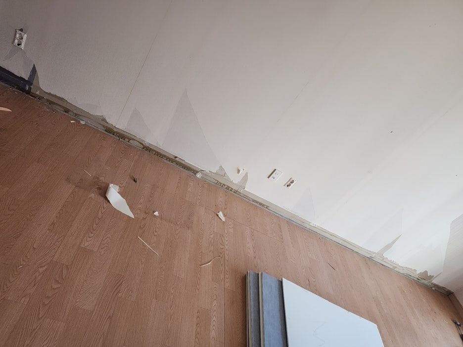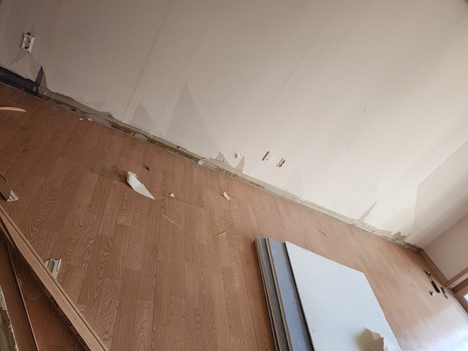 기존에 부착된 걸레받이를 뜯어냅니다.