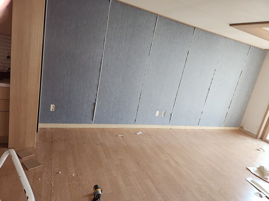 단열 공사를 위해서 벽에 있는 짐은 다른 곳에 치우고